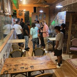 You'd be forgiven if you couldn't find this place if you were told about it. It's on a very dark side street off ninth Street in Durham. It's a second floor location, so there's nothing on the ground floor to tell you that it's there except an arched doorway with a handpainted unlit sign over it. Go ahead walk up the stairs and it's on your right. You enter a nicely lit, open area with the food prep bar in front of you across the narrow room. A huge menu is hanging over the glass panels. There are paper ones around as well. Regarding the decor: you just walked up stairs plastered with stickers and graffiti and into a door that had no readable label. There will be no tea lights and cloth tablecloths. It's a late night dive, and fills the spec perfectly. Actually, it's nicer than most dive bars I've been to. But temper your expectations, ok? Anything is good. I like the quesadillas, but the burritos are fine, too, just messier. I'd only eaten in once, but frequently stop in on the way home from work or after a game night. They are open until 4 am, so good for after hours folks. To go orders are made quickly, so the pupper at home waiting after work doesn't get too much worse.